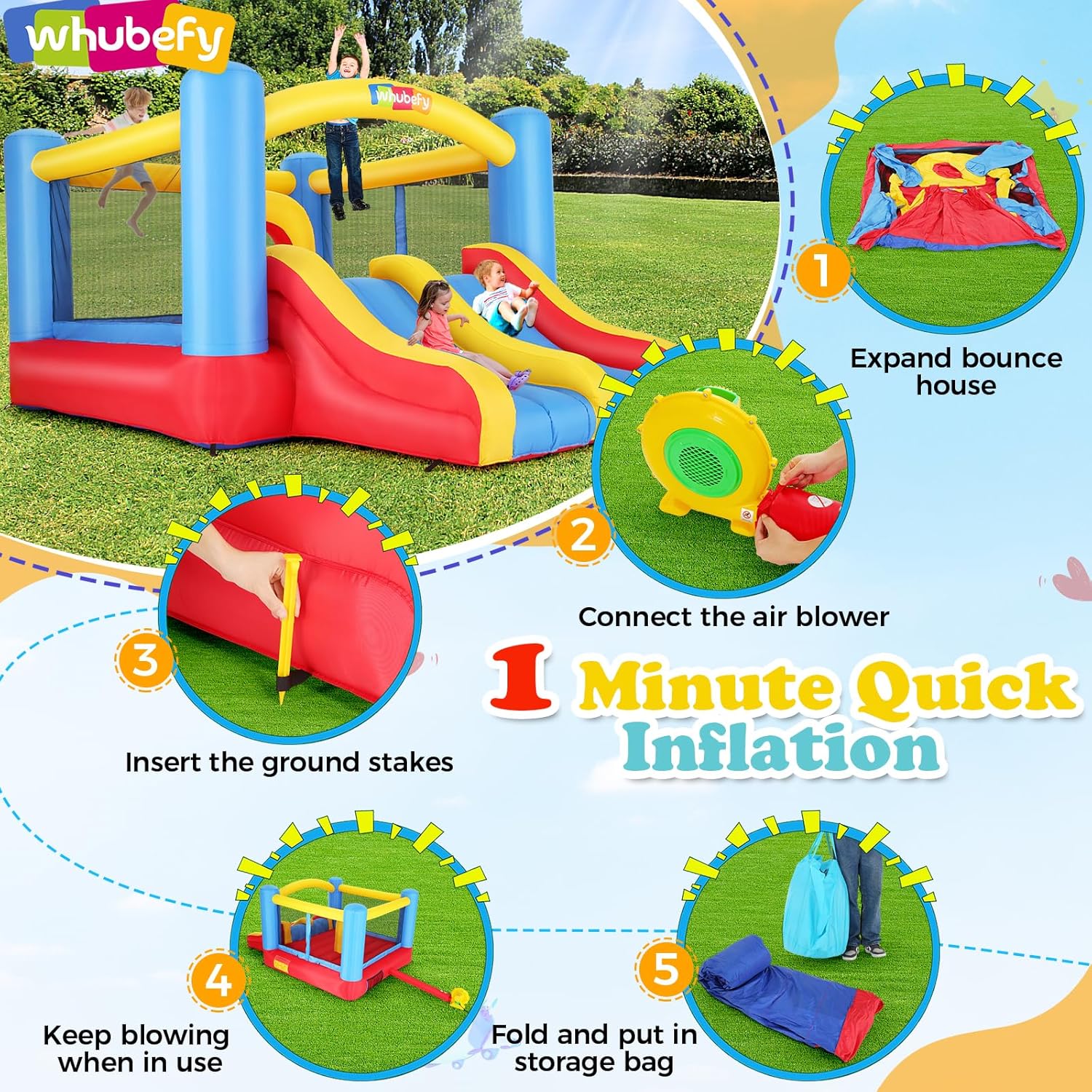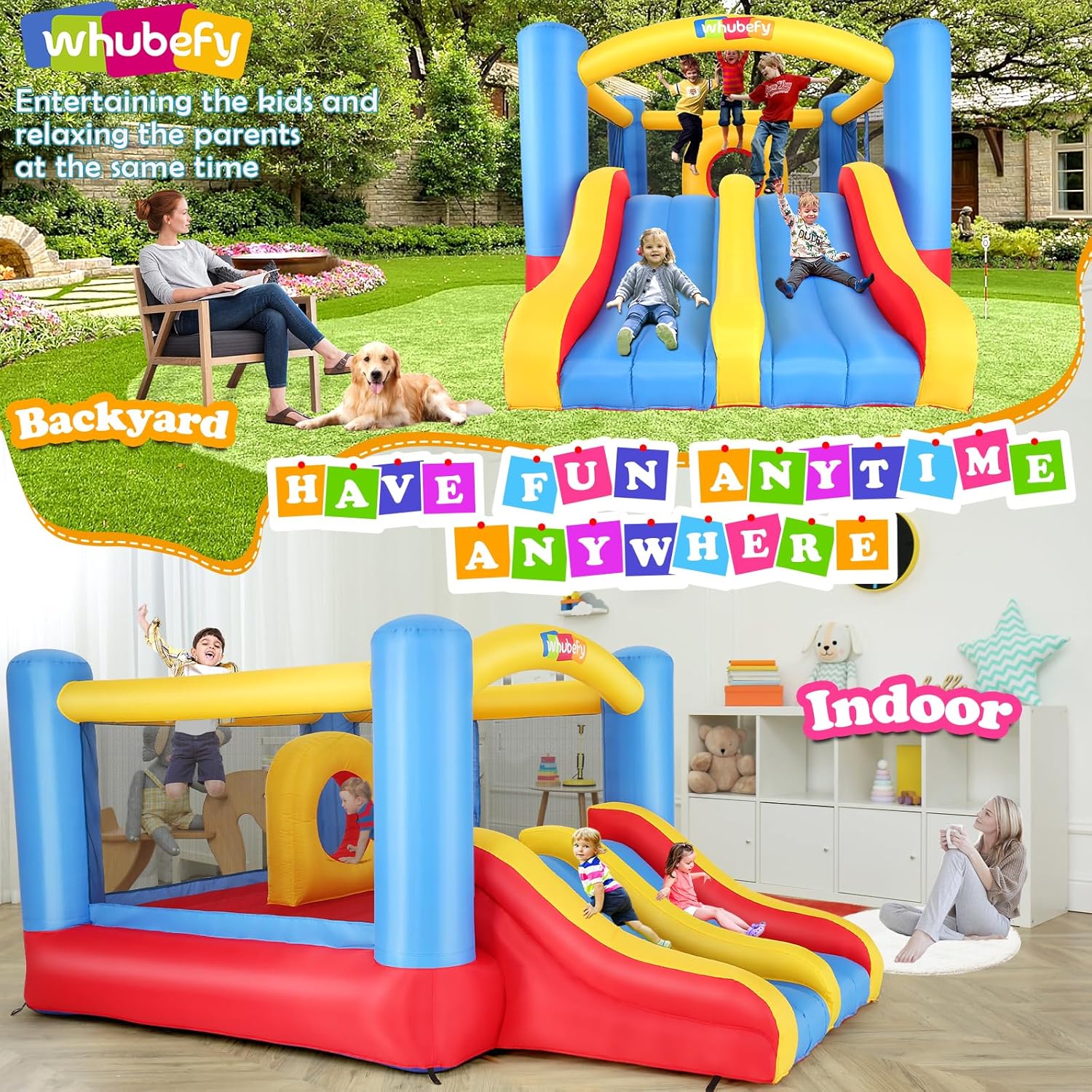 Whubefy Bounce House for Kids 3-10, 12.6FTx9FT Inflatable Bounce House with Blower for Big Kids 3-6 with Double Slide Obstacle
