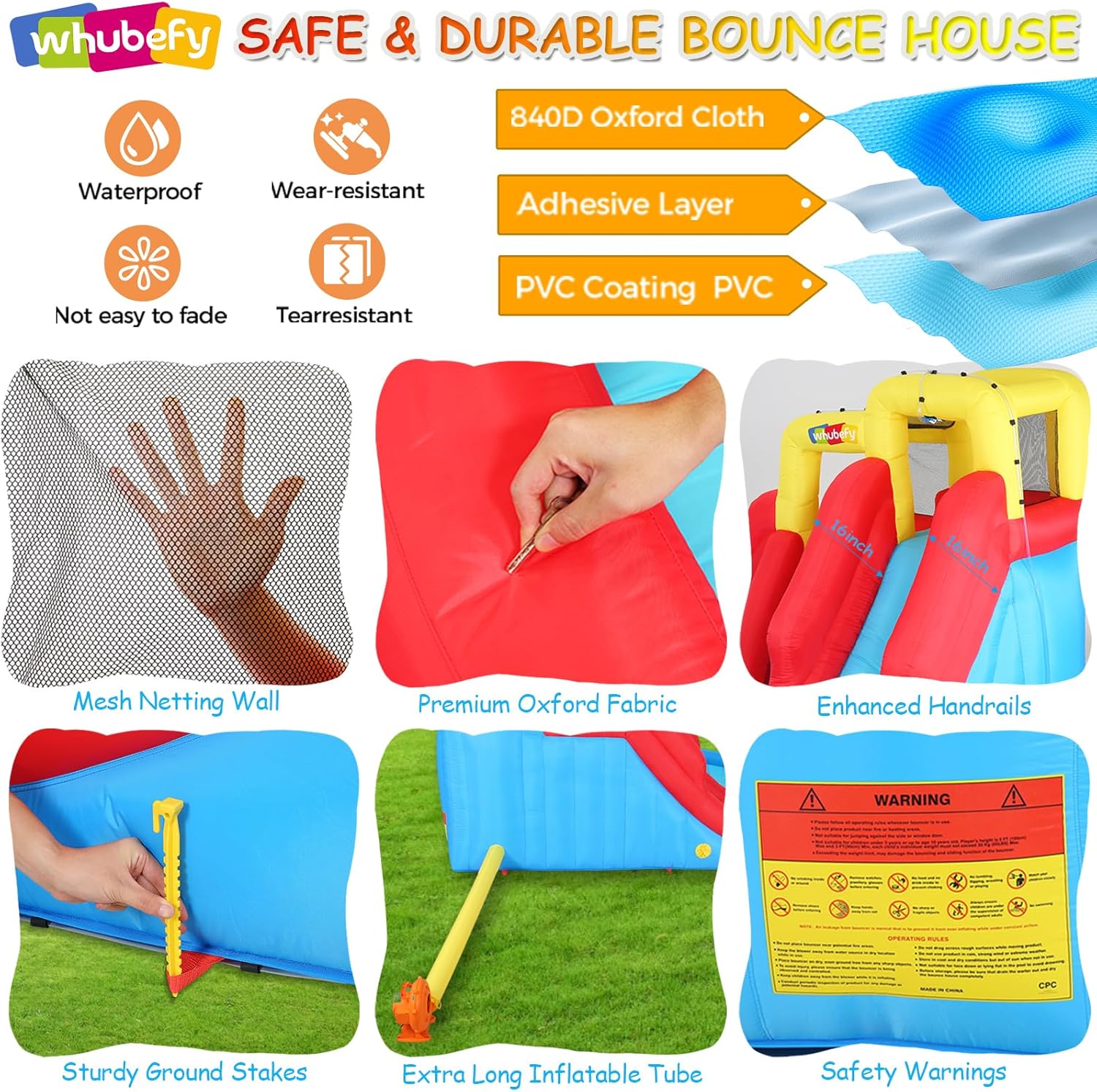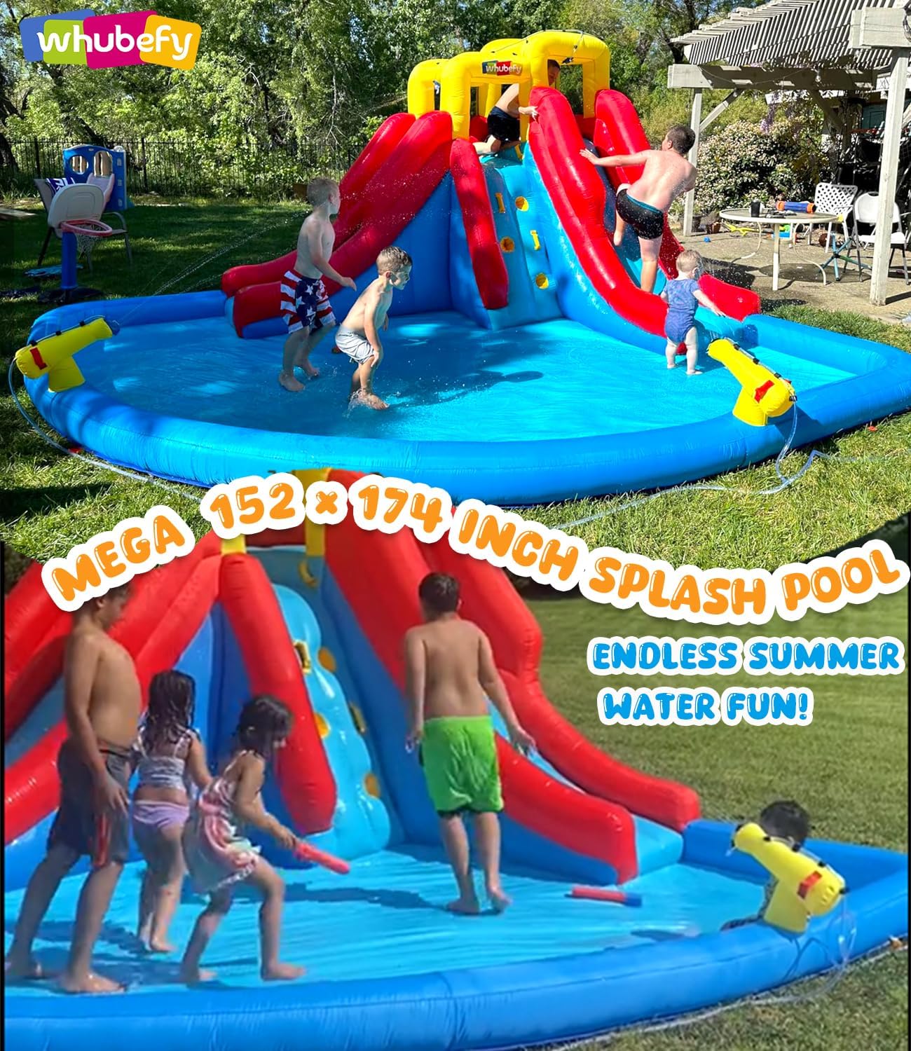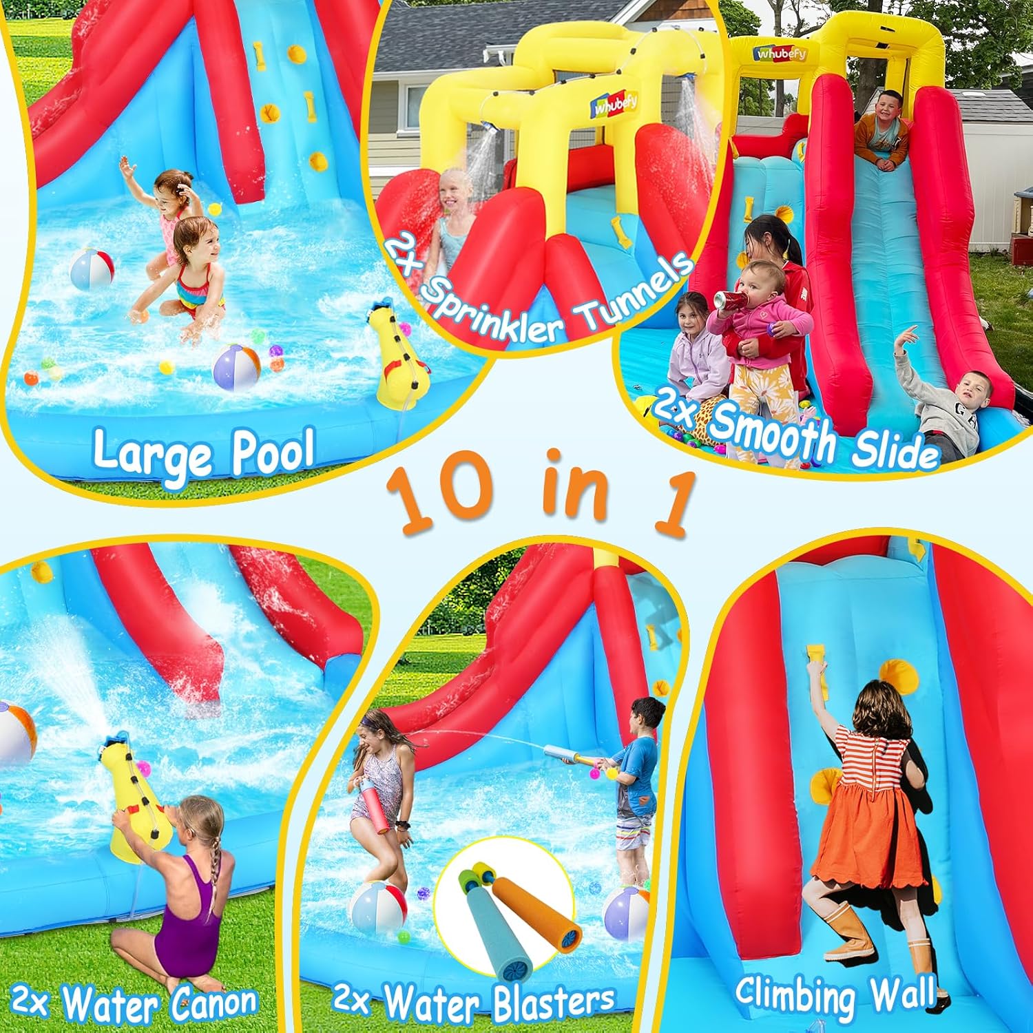 Whubefy Inflatable Water Slide for Kids 3-12, 14.5 x 12.7FT Big Waterslide Bounce House Park with Double Slides Climbing Wall Splash Pool